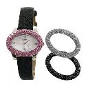 Description: null Stylish Rotary dress watch with interchangeable oval bezels set with Austrian crystals. Waterproof. Lifetime Guarantee.