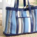Description: Perfect for the beach and so much more! This heavy-duty multistriped tote in different shades of blue and cream boasts a 16-oz. cotton exterior.