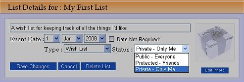 If you want full control over who has access to a list you can set it as 'Private' and then set a password. This is ideal for a private wedding list where you may want to make the list available to guests but not have to set them all up as contacts.