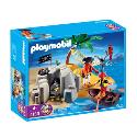 Description: Lots of great construction fun with this compact Playmobil pirate playset. Includes island, row boat, figures, hammock, parrot, flag and treasure chest.