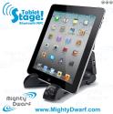 Description: The Tablet Stage! by Mighty Dwarf® combines the security of a stable, vertical-orientation, tablet platform with an advanced set of amazingly powerful speakers. Using the Tablet Stage! will increase your use and enjoyment of your tablet – any tablet – by drastically improving the sound quality and providing a secure stage for your finger interaction with the tablet touch screen.