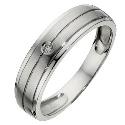 Description: null The unusual brushed and polished finishes on this white gold ring make it a classy alternative to a plain wedding band. It is made all the more special by the sparkling round diamond.